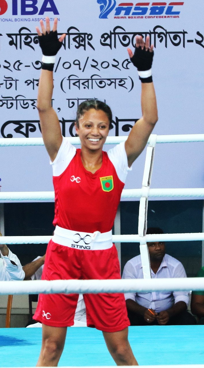 লড়াইটা যুক্তরাষ্ট্রে প্রশিক্ষণ নেওয়া বক্সার জিনাত ফেরদৌস বনাম বাংলাদেশে প্রশিক্ষণ নেওয়া আফরা খন্দকারের। তবে প্রবাসী বলেই জিনাতের খেলা দেখতে ভীড় ছিল মোহাম্মদ আলী বক্সিং স্টেডিয়ামে। যুক্তরাষ্ট্র প্রবাসী বক্সার জিনাত ফেরদৌস খুবই অ্যাটাকিং খেলছিলেন। তার প্রত্যেকটি পাঞ্চ আফরা খন্দকারকে আঘাত করছিল। তখন গ্যালারিতে বসা আফরার বোন জাতীয় নারী ফুটবল দলের অধিনায়ক আফঈদা খন্দকার মুখ ঢাকছিলেন। আবার যখন আফরা জিনাতের মুখে পাঞ্চিং করছিলেন, তখন ‘জোরে মার’ ‘জোরে মারো’ বলে চিৎকার করছিলেন আফঈদা। আজ বৃহস্পতিবার মোহাম্মদ আলী বক্সিং স্টেডিয়ামে অনুষ্ঠিত জাতীয় বক্সিং চ্যাম্পিয়নশিপে মেয়েদের ৫২ কেজি ওজন শ্রেনীতে তিন রাউন্ডের সবকটিতেই আনসারের আফরাকে হারিয়ে স্বর্ণপদক জিতে নেন প্রথমবার খেলতে আসা নরসিংদী গুডউইল বক্সিং ক্লাবের জিনাত ফেরদৌস।