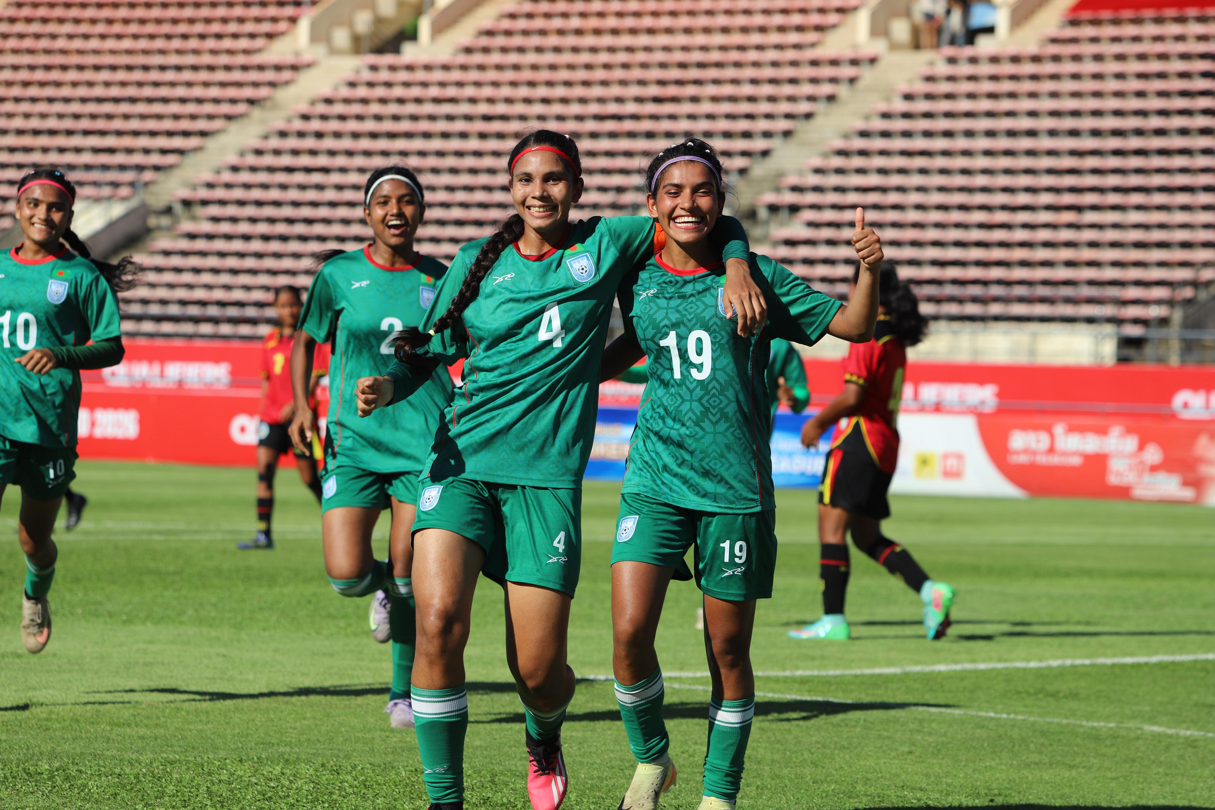 এএফসি এশিয়ান কাপ বাছাইয়ের পাঠ চুকিয়ে সিনিয়র মেয়েরা ইতিহাস হড়ে প্রথমবারের মতো এশিয়ান কাপের মূল পর্বে খেলার যোগ্যতা অর্জন করেছে। এবার পালা অনূর্ধ্ব-২০ দলের। এএফসি নারী এশিয়ান কাপ অনূর্ধ্ব-২০ চ্যাম্পিয়নশিপ বাছাই টুর্নামেন্টের শুরুর দুই ম্যাচ দাপটের সঙ্গে জিতে সেই কাজটি অনেকটা এগিয়ে রেখেছে। দারুণ দুই জয়ে বাছাই পর্বের ‘এইচ’ গ্রুপের শীর্ষে অবস্থান করছে লাল-সবুজের মেয়েরা।
