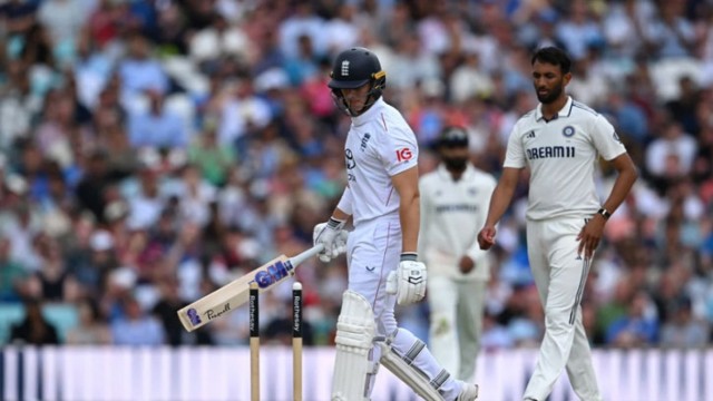 ওভালে চতুর্থ দিনের খেলা শুরু হওয়ার আগে এগিয়ে ছিল ভারত। ইংল্যান্ডের জয়ের জন্য দরকার ছিল আরও ৩২৪ রান। ভারতের প্রয়োজন ছিল ৮ উইকেট। সবুজ উইকেটে ৩২৪ রান কম নয়। দিনের শুরুটাও খারাপ হয়নি ভারতের। প্রথম সেশনে বেন ডাকেট ও ওলি পোপ আউট হয়ে যান। তখন ইংল্যান্ডের রান ১০৬। অর্থাৎ, জিততে দরকার ছিল আরও ২৬৮ রান। প্রসিদ্ধ কৃষ্ণ ও মহম্মদ সিরাজ ছন্দে ছিলেন। সেই সময় আর একটা উইকেট পড়লে খেলার রাশ অনেকটাই ভারতের হাতে চলে আসত।